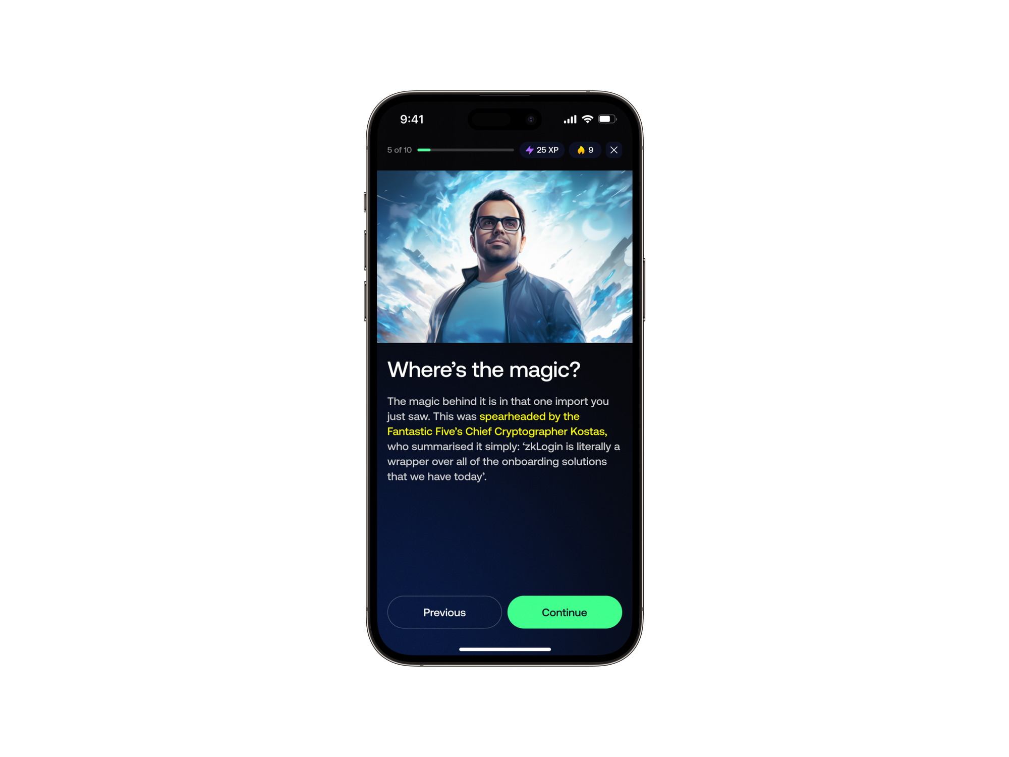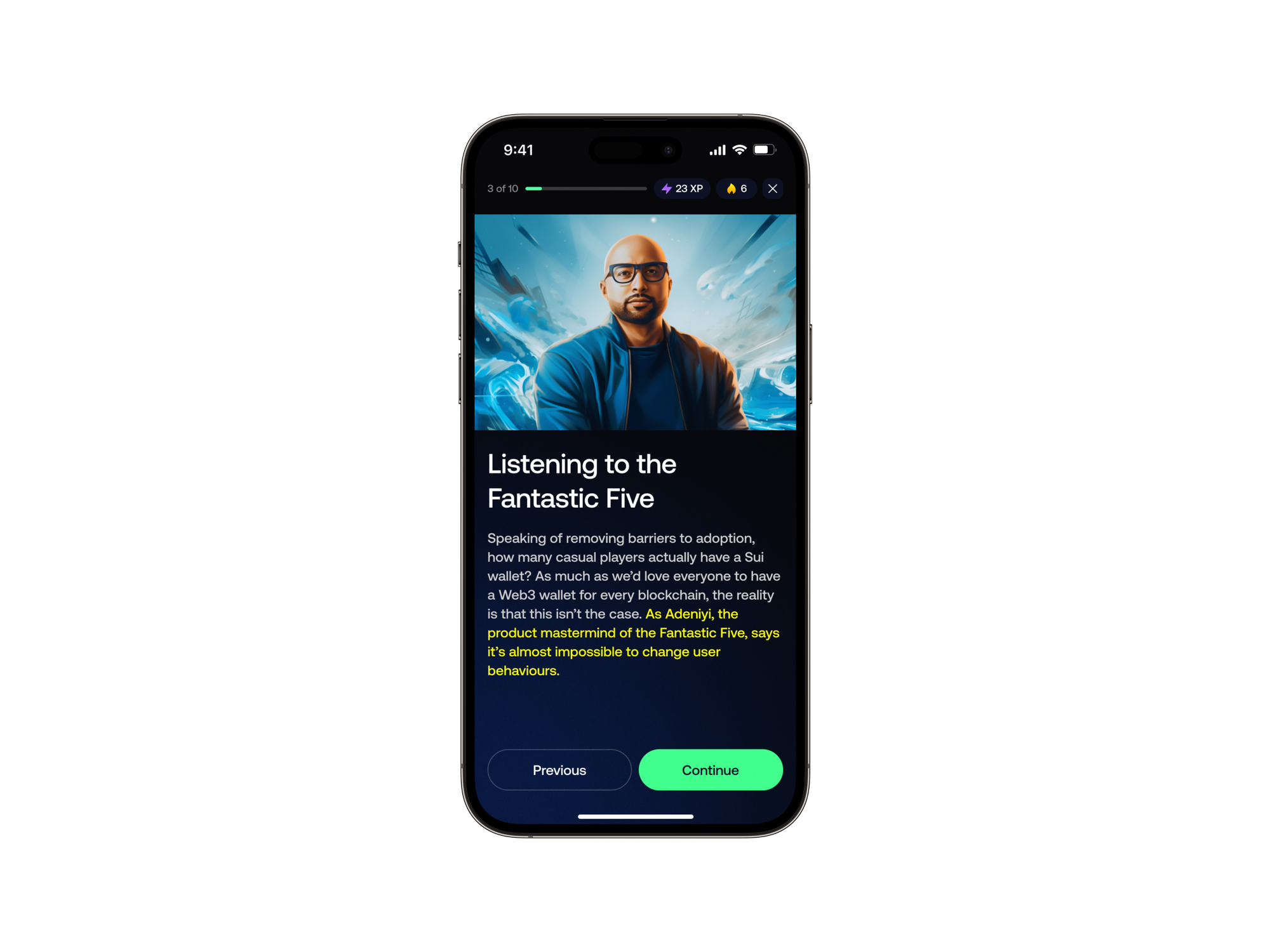 Dom: Building on what Phil was saying about the story, and weaving in all of the different founders, our learning philosophy is about creating a narrative around each challenge that we launch, and each module within those challenges that we launch, that really enables people to follow along and actually want to dive deeper beyond the technology itself. What we've seen over the last couple of years, and really since getting into blockchain, is that a lot of technology is fascinating but, at the same time, it's very complex and so technologically advanced that people don't really always understand it and have a good motive to actually get into it. Having that personal touch, having that connection to the characters in a story, that helps people understand what the tech is all about. It’s really important. And that's why we've seen the course completion rates be super high across all of our courses. I think for Sui, it's around 70 plus percent, which is pretty much double or even triple what comparative e-learning courses would be.