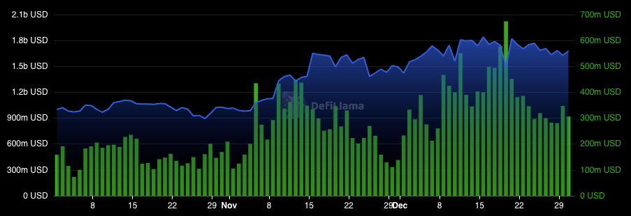 | Peak TVL | $1,823 m (12/16/24) |